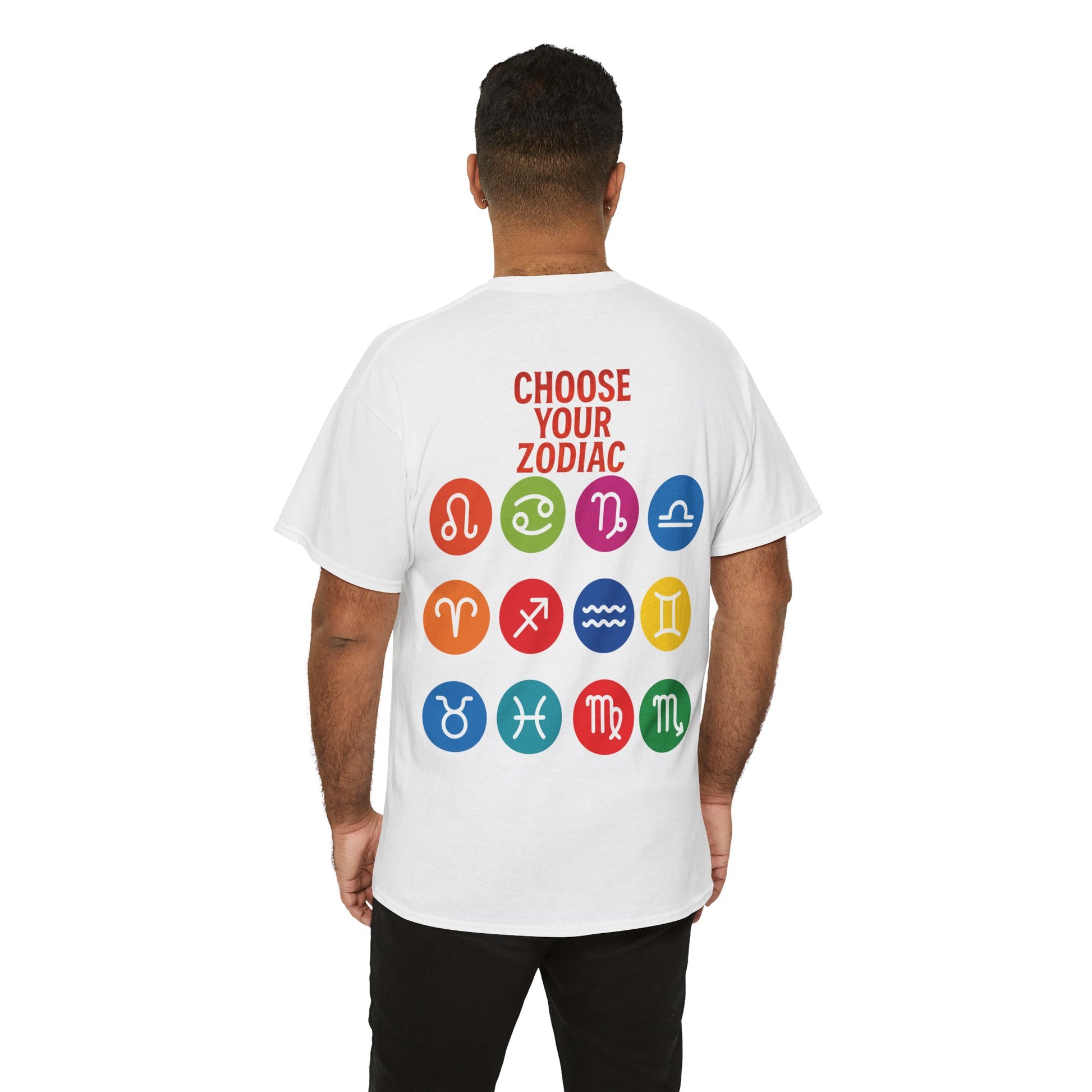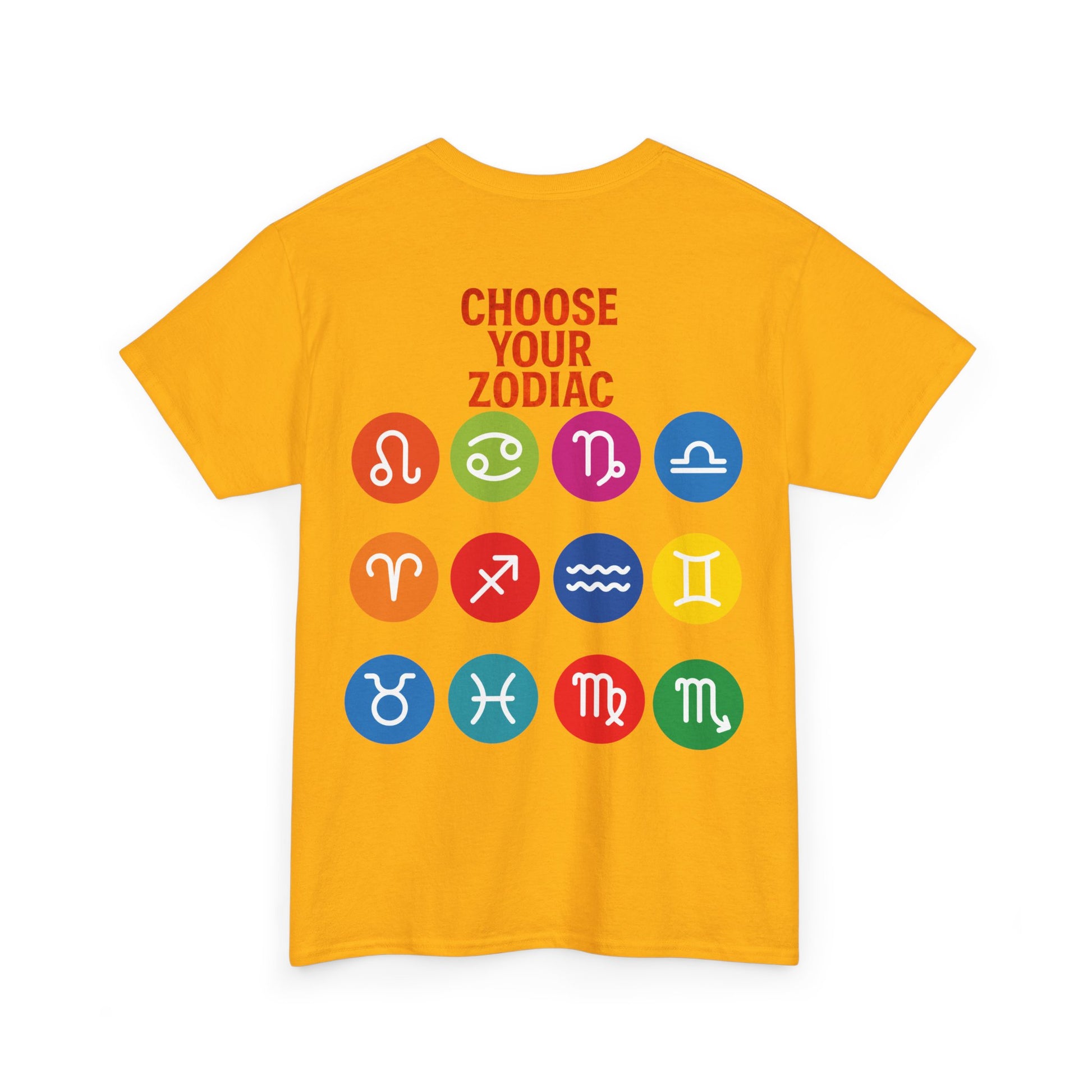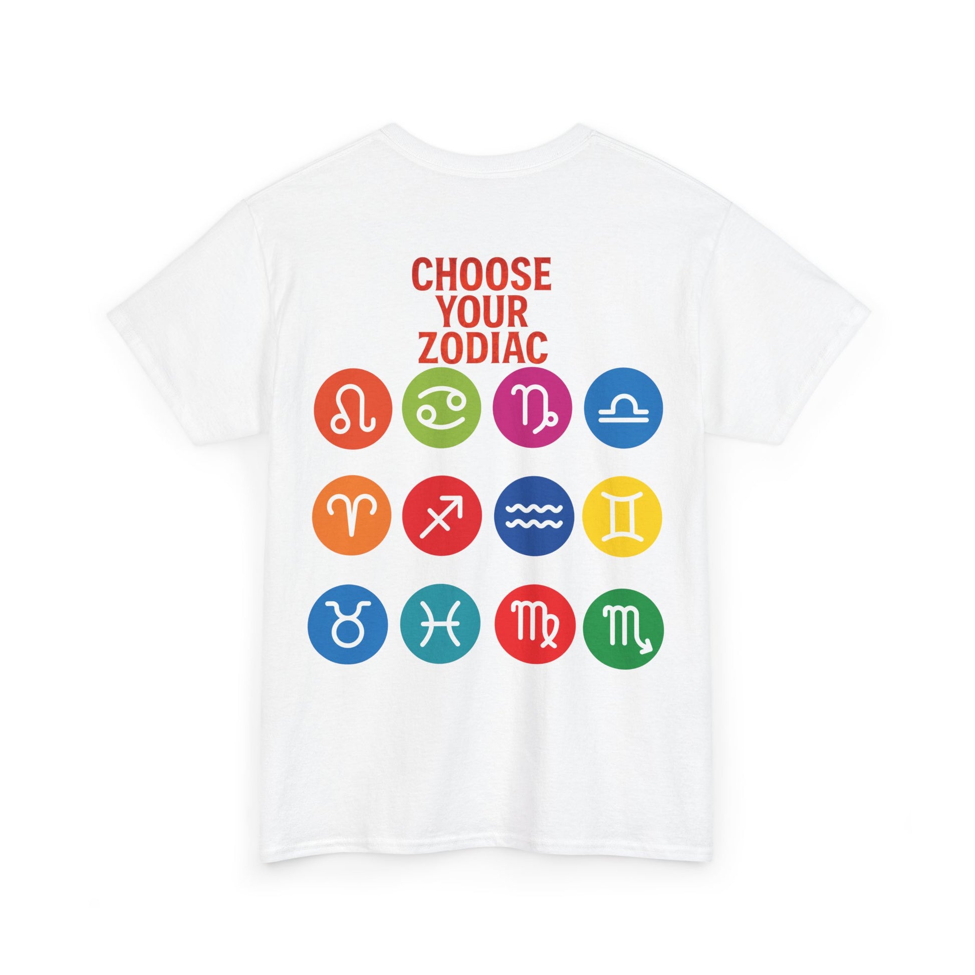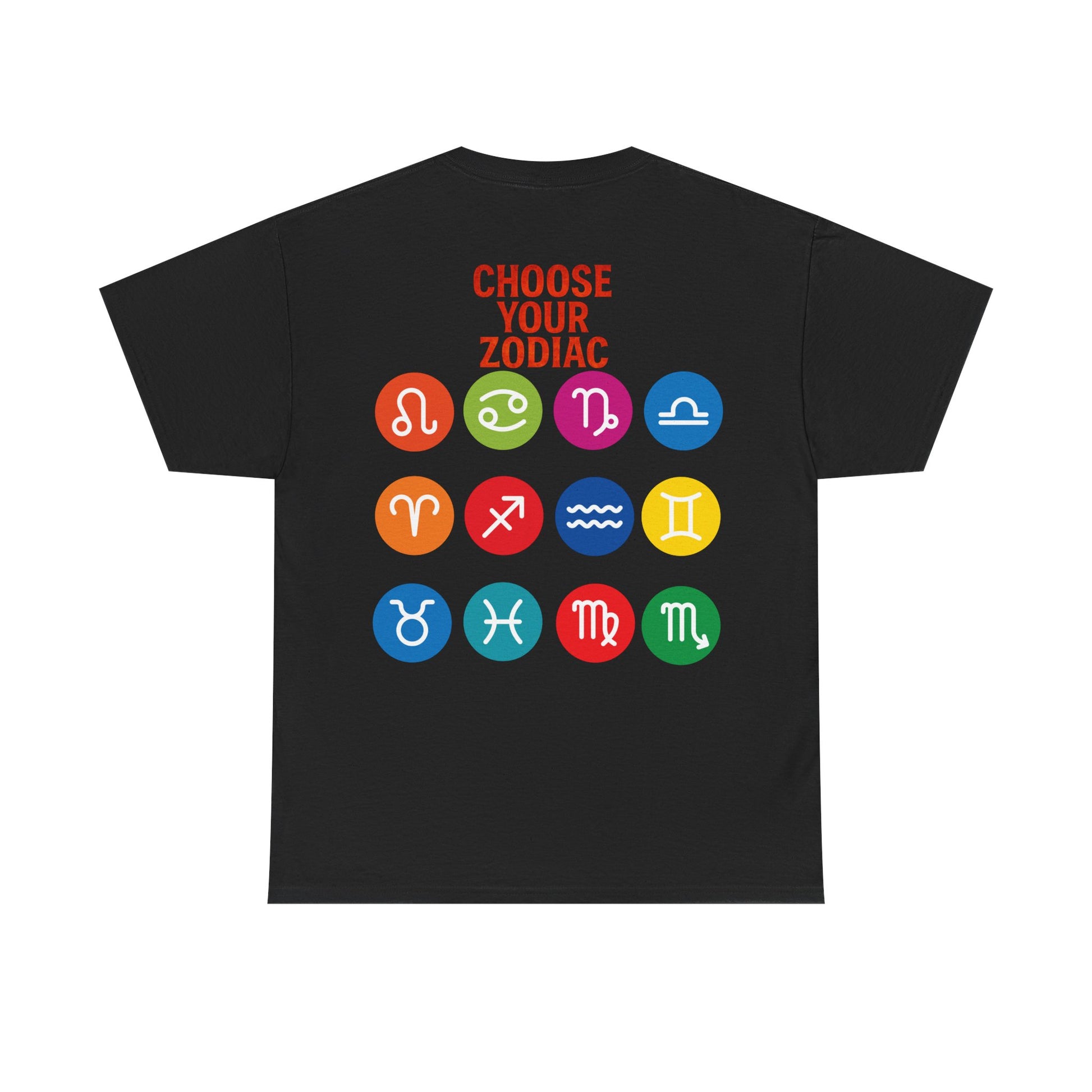 "CHOOSE YOUR ZODIAC" design on the back with all 12 zodiac icons