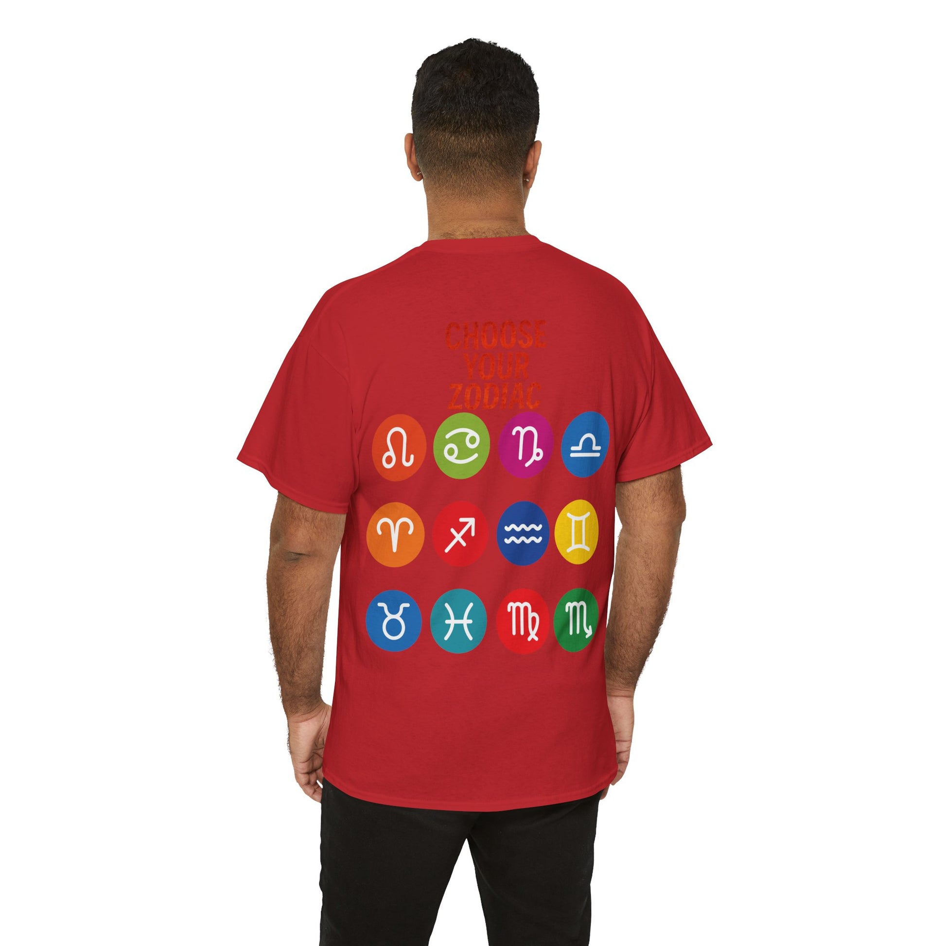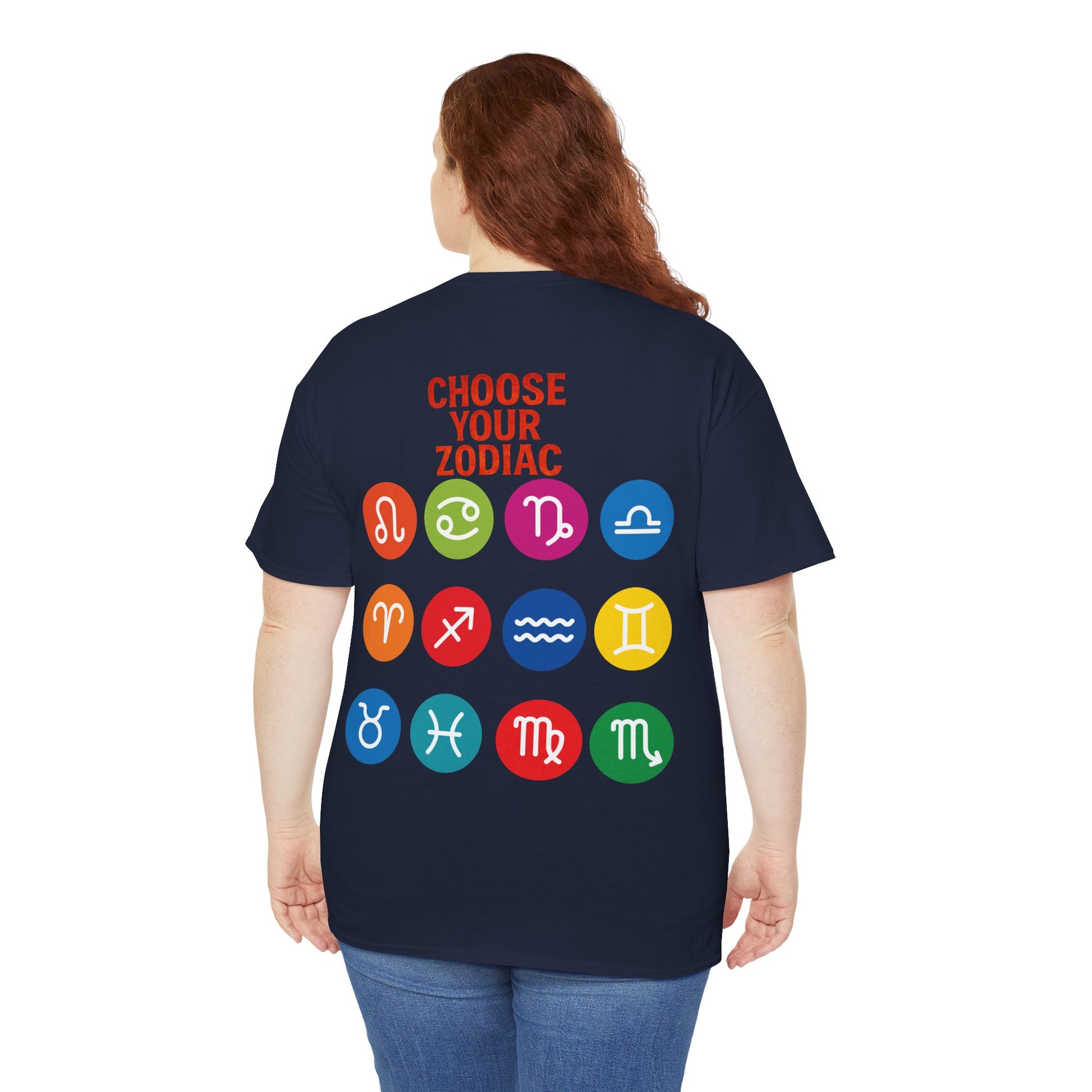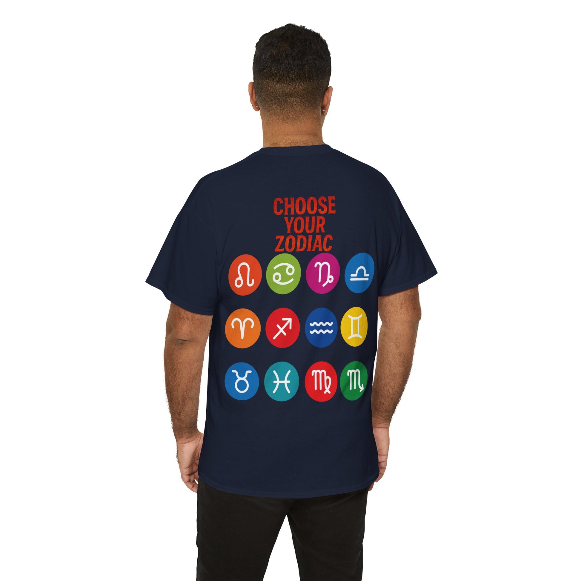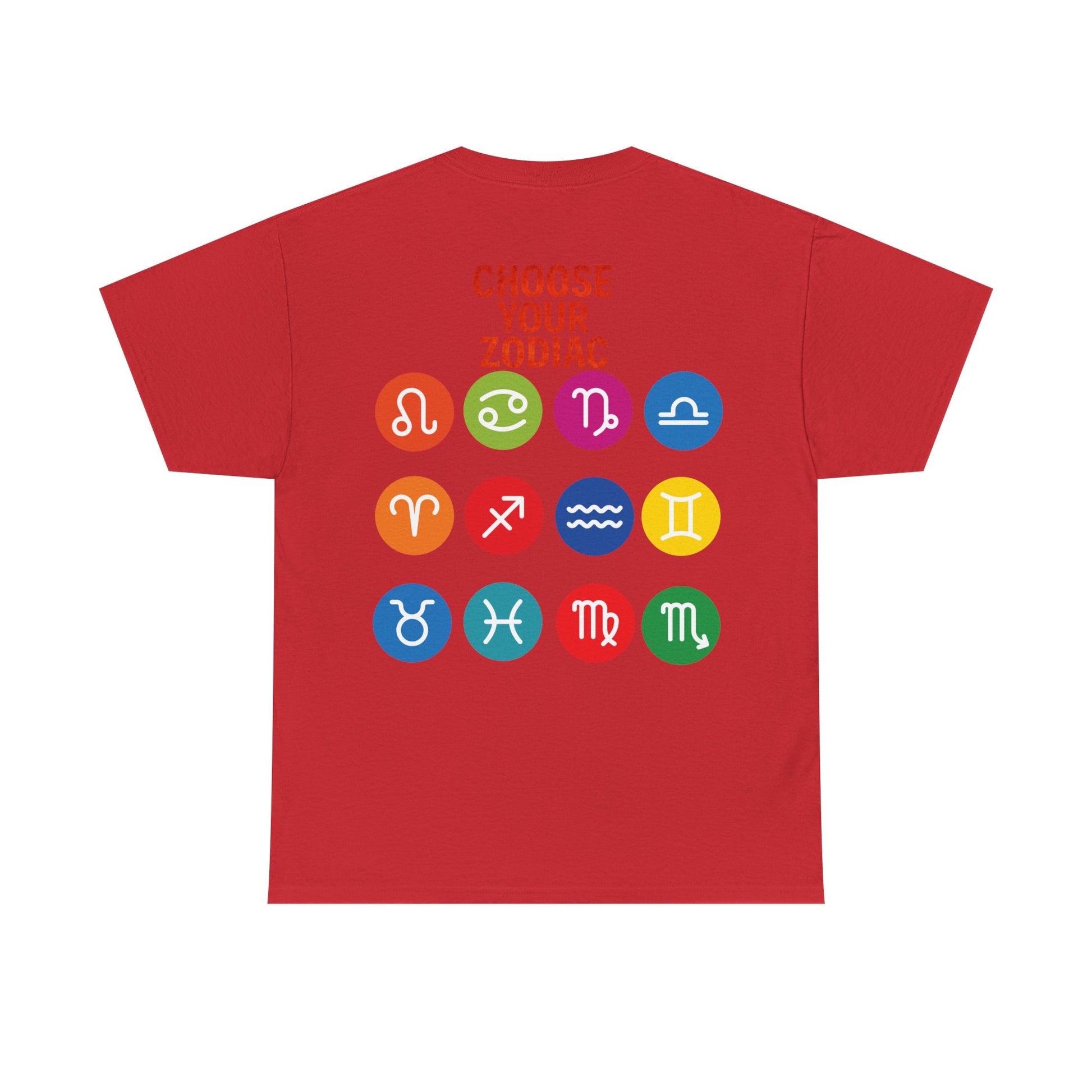 "CHOOSE YOUR ZODIAC" design on the back with all 12 zodiac icons